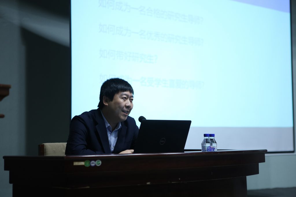 “如何成为一名受学生尊敬的研究生导师?”苏庆宇教授分别从树立口碑、用心经营、持续创新等维度进行研究生导师指导经验分享。首先,他阐述本次报告主题:如何成为一名受学生尊敬的研究生导师,“办事靠谱、治学严谨、为人谦和、成果丰硕”是他对合格导师的定义。在研究生培养方面,苏教授鼓励各位新晋导师要从“亲力亲为、内部激励、外部压力、打造品牌”四个层面进行经营,并从切身经历出发,多角度进行案例分析。在工作方面,他提出“与时俱进、开拓创新、全面发展、终身学习”等建议,鼓励新晋导师培养持续创新能力,最后,苏庆宇教授寄语在座新晋导师“定好轴、开好头、稳步走”